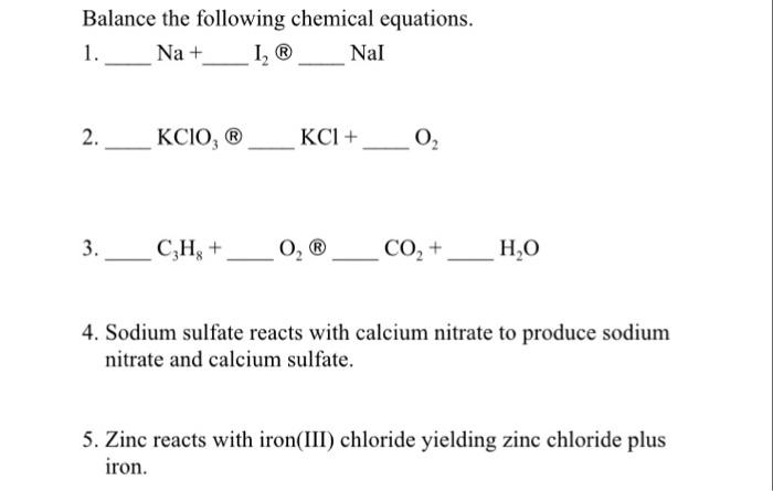 Solved Balance The Following Chemical Equations Nai Na 2 Chegg Com